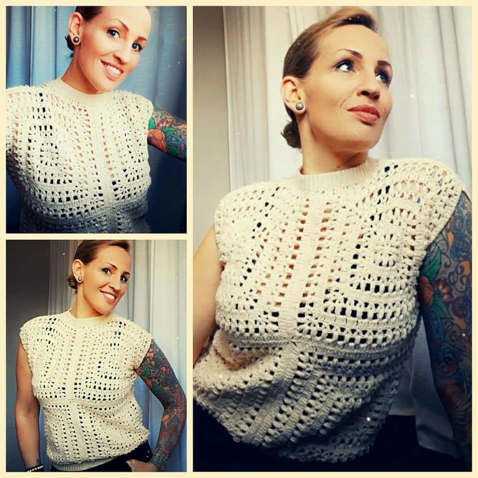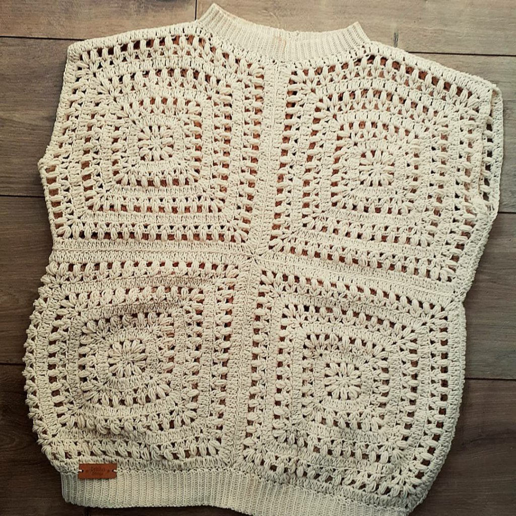 Naai de overige 4 squares nu ook op dezelfde wijze aan elkaar, en voila, we hebben een voorkant en een achterkant van het truitje!