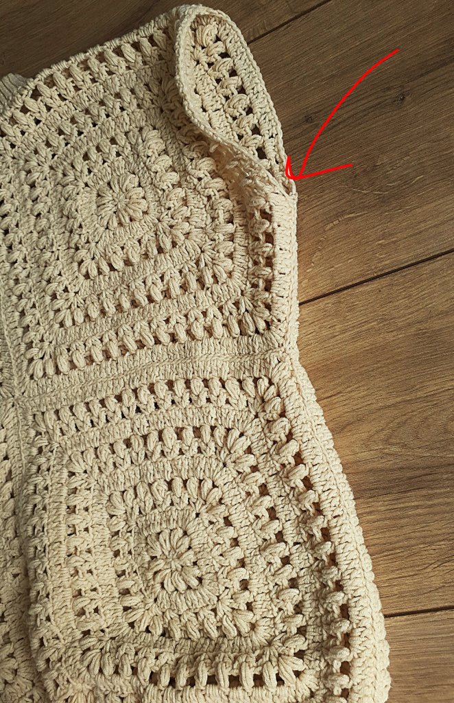 Bij de boord aan de nek-zijde startte ik met 11 losse en haakte ik het verder hetzelfde als de wijze van de boord aan de onderkant.
