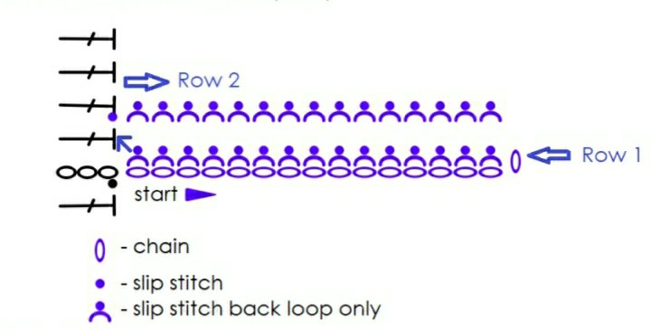 Rij 2: 8 halve vaste in de achterste lus, 1 losse en keer je werk. (Goed tellen, want de laatste zit altijd verdekt opgesteld…)