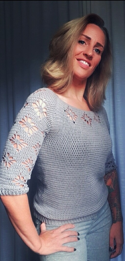 Soms heb je wel eens van die ideeën en garen die zo mooi en snel samen komen…. Trui Lilly rolde daarom binnen een week van mijn haaknaald en ik was gelijk verliefd op de eenvoud met toch een lief detail……de lelie….