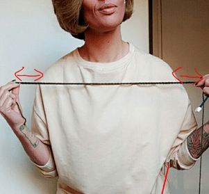 Om te bepalen hoe wijd je oksels (en dus ook je mouwen) wilt hebben kun je het beste de lap met de opening over je hoofd doen, alsof je de trui al aantrekt. Sluit dan met je vingers de lap onder je oksel en kijk of je arm door dat gat kan. Zet een steekmarkeerder op de plek waar je de oksel wilt sluiten. Zet aan de andere kant op exact dezelfde plek een steekmarkeerder zodat beide armen net zo wijd worden…