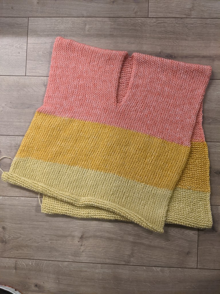 Als je voor een korte mouw ging, dan is je trui nu klaar!. Als je lange mouwen wilt, haken we nog even door!